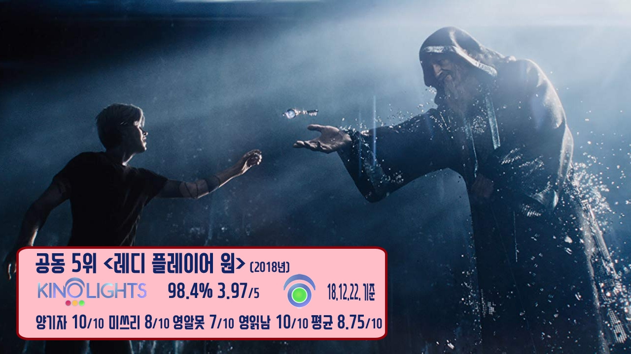 다른 공동 5위는 스티븐 스필버그 감독의 대중문화를 향한 러브레터라 불렸던 <레디 플레이어 원>입니다. 작품의 주 무대 '오아시스'는 VR 세상을 통해 구현된 가상의 세계로, 현실보다 더 현실 같은 공간으로 표현됐는데요. 이렇게 현실을 대체하는 가상현실은 엄청난 자유를 보장하지만, 인간의 삶을 피폐함으로 물들게 하는 등 작품에서 다양한 면을 보여줍니다. 음악, 영화, 게임 등 수많은 대중문화를 헌정하는 의미로 다양한 이스터에그가 등장하는 만큼, 전형적으로 '아는 만큼 더 재밌게 즐길 수 있다'류 영화로 볼 수 있는데, 꼭 알지 않더라도 작품의 기본적 재미에는 빠져들 수 있는 내용으로 구성됐죠.