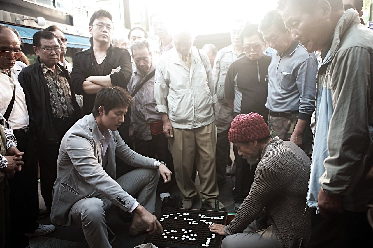 2014년 개봉한 <신의 한 수>의 후속작이자 프리퀄로 돌아온 <신의 한 수: 귀수편>(이하 <귀수편>)은 이 무너진 신화 앞에서 무엇을 보여줄 수 있었을까. 영리하게도 이 영화는 더 과거로 돌아가고, 더 깊은 음지로 들어가 세상에 드러나지 않은 재야의 고수들을 만난다. 전편이 그랬듯 이 영화는 만화적이고, 현대판 무협지의 길을 걷는다.
