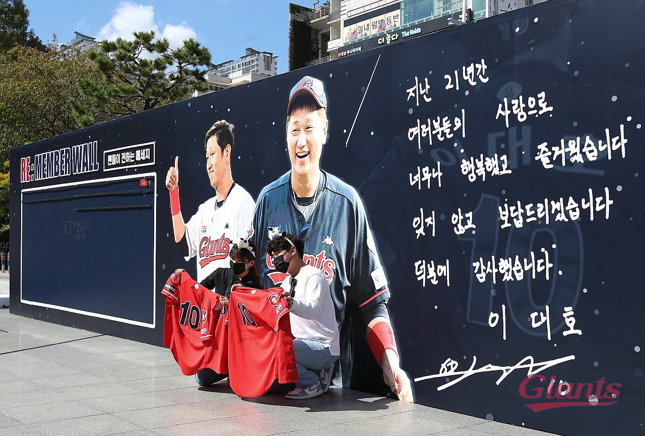 지난 22년간 부산과 자이언츠에서 함께해줘서 감사합니다. 언젠가 다음 세대의 야구팬들은 사직구장에 걸린 10번으로 당신의 존재를 어렴풋이 말하는 날이 오고야 말겠지만, 자이언츠 야구를 보는 내내 자랑할 겁니다. 그때 롯데엔 최고의 타자가 있었고 팬과 호흡했었다고, 우리 팀은 이대호를 한국에서 유일하게 가져봤던 팀이라고.