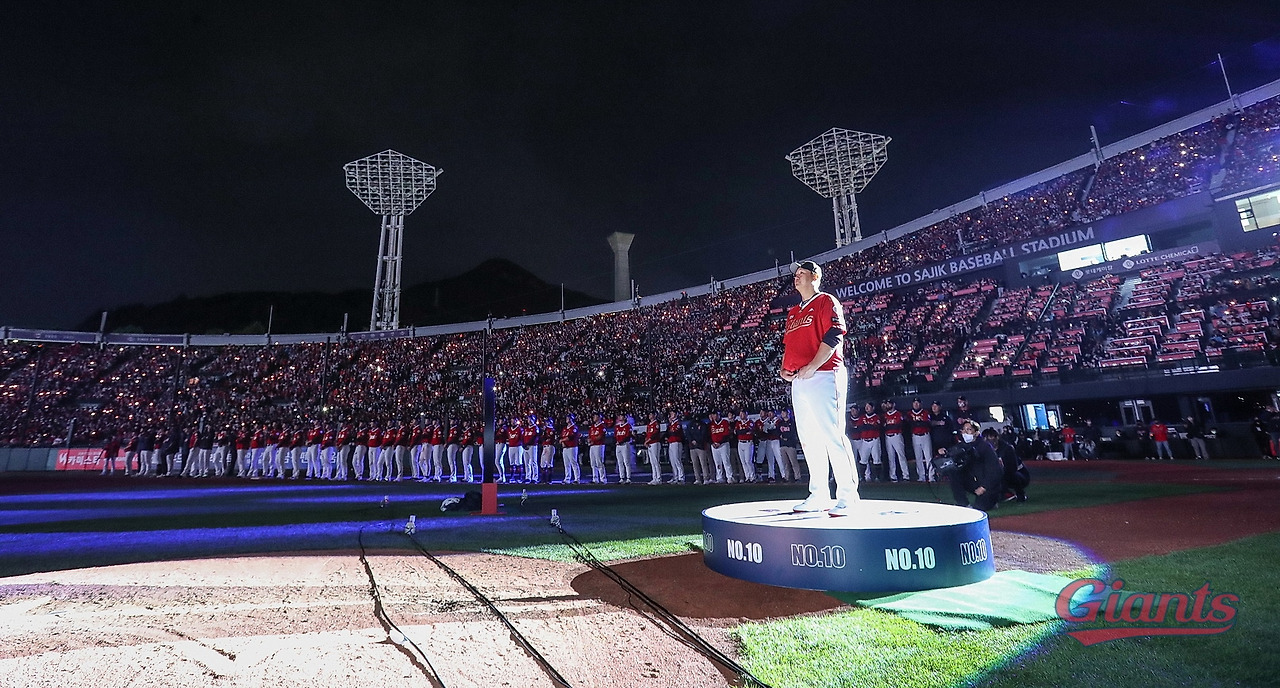좀처럼 펜이 움직이지 않았다. 썼다, 지웠다를 반복하며 지난 영상을 되돌려 보고 있는 중이다. 예고되었던 은퇴였지만 직접 마주한 그 순간의 무게감은 달랐다. 지난 20년동안 자이언츠에서 거대한 존재였던 이에 관해 조금 더 잘쓰고 싶으면서도, 이 글이 끝나면 나의 한 시절에도 마침표를 찍게 되는 것만 같아 두려웠다. 롯데를 응원했던 대부분의 시간, 그는 거기 있었으니까. 그래서 '은퇴식'이란 말이 괜스레 짜증나기도 했다. 한 선수와 나의 한 시절을 칼로 도려내듯 끝장내버리는 것 같아서.