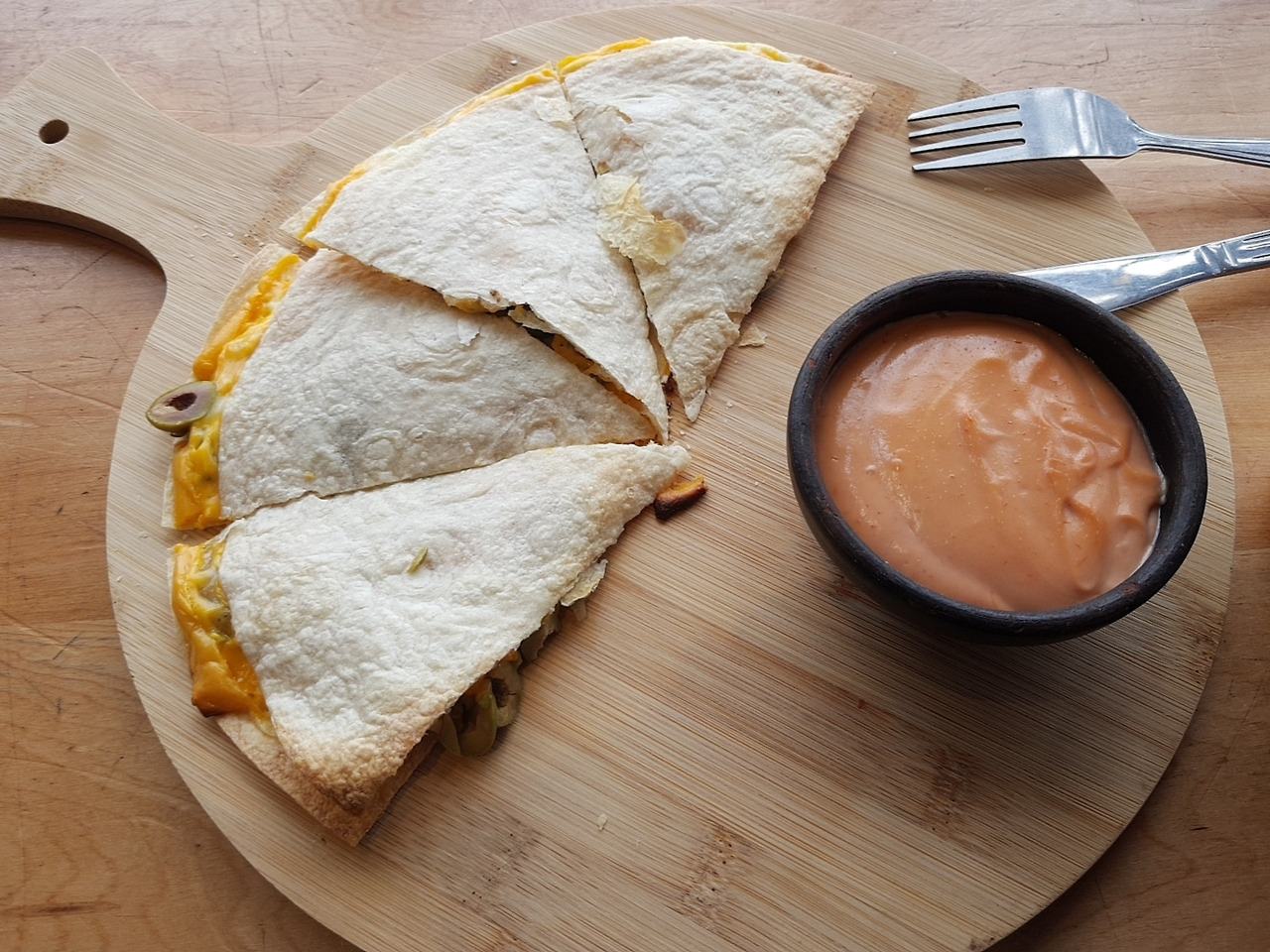 그리고 음식을 같이 파는 체크인 장소에서 점심이 다가오는 시간이라 배도 고프기도 하여 퀘사디아와 핫초코를 시켰다. 퀘사디아가 내 입맛에 너무 짰는데 코코아 덕에 맛있게 먹을 수 있었다.