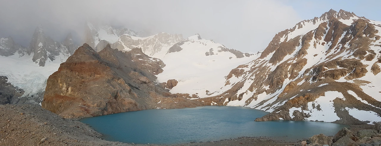 어두운 밤 달빛에 비치는 호수가 잔잔히 물결쳤다. 반짝반짝 힘들게 올라가는 중간에 다시 감탄을 자아내게 했다. 라구나 로스 뜨레스로 향하는 길, 편도 4시간 이라는데, 마지막 1시간이 정말 힘들다고 들었다. 역시나 그 말은 사실이었다. 처음에 올라가는 길과 오르막 빼고는 평탄하던 길이 갑자기 돌길로 바뀌었고 경사도가 높은 길을 치고 올라가야 했다.