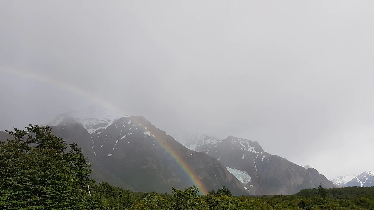 다시 힘을 내서 일어나 숙소를 향해 출발했다. 내려가는 길에 잠깐 뒤를 돌아보니 무지개가 떠있었다. 비가 계속 내리다가 잠깐 멈추었는데, 그 사이에 무지개가 모습을 드러냈나 보다. 날이 흐린데도 그 사이에 아름다움을 뽐내는 자연, 또 한 번 감탄한다.