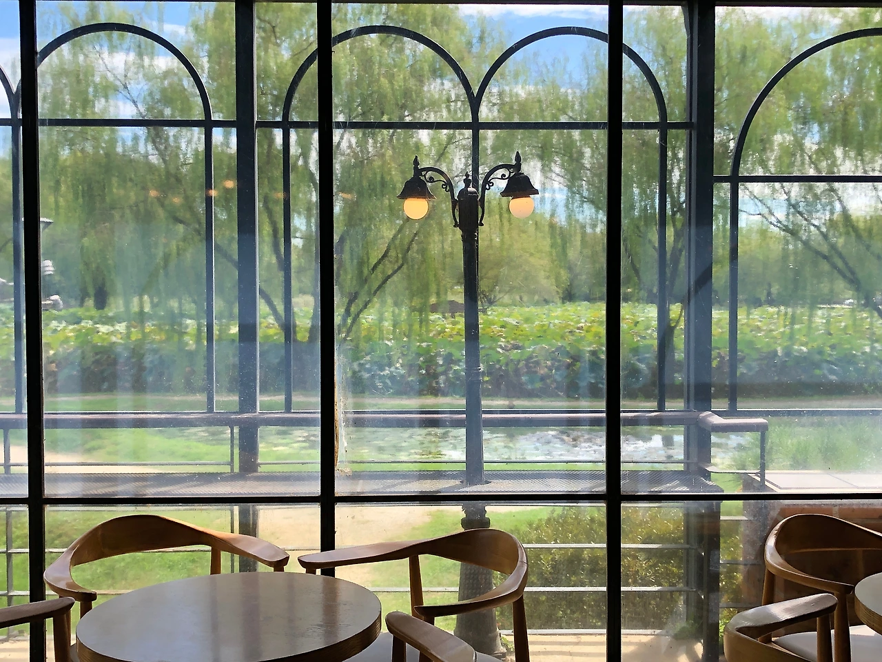커피 한잔을 들이켜고 나니 휴. 살 것 같다. 드디어 마준한 풍경들이 눈에 들어오는 순간. 연꽃과 크나큰 나무들에 창밖 가득 초록빛이 가득한 고즈넉한 공간. 내가 참 좋은 곳에 와 있었구나!