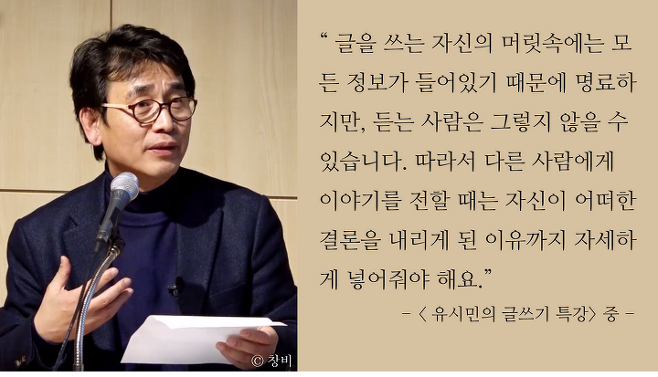 글자는 책을 탄생시키고, 책은 위대한 인간을 만든다. 우리는 매일 일상에서 말을 하며 글을 쓰고 있다. 그러나 전문가로서의 나를 만들기 위해서는 책으로 한 단계 더 발전시킬 필요가 충분하다. 나 혼자의 힘으로 영원히 남겨질 수 있는 기본이 되는 나의 경쟁력 책을 먼저 써야 한다. 그리고 유튜브와 병행해도 좋고, 다른 사람의 유튜브에 출연해서 영향력을 키워나가도 된다. 글쓰기를 잘하는 사람은 유튜브에서도 자신의 생각을 잘 정리해서 말할 수 있는 능력이 있다. 여러분들이 책을 쓰고 나서 유튜브 채널까지 운영하면 더할 나위 없이 좋다.