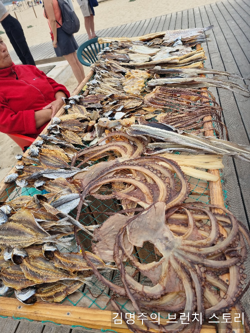 해변 도로를 따라 해풍으로 잘 말린 문어와 각종 해산물 파는 노점상들이 세워진다.