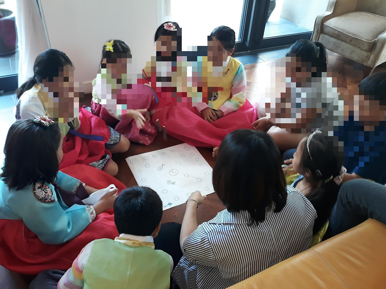 중국계 현지인들의 요란한 춘절 문화를 보고 있자니, 한인 교민들도 고향 가족친지들이 생각나기 마련이다.말레이시아 아이들 학교에서 만난 한인 몇몇 가족들이 모여 설 명절을 축하하기로 한다. 한복이 아이한테 작아지면 다른 아이들과 서로 돌려가며 물려 입고 빌려 입는다. 집집마다 설음식을 한 가지씩 만들어 가져오는데, 떡국, 꼬치 전, 잡채, 한과 모아보니 제법 그럴싸한 설 잔칫상이 된다. 아이들은 엄마들에게 공손하게 절을 하고 세뱃돈을 받는다. 어떻게 절을 해야 할지 모르는 아이들은 형아 언니들이 살뜰하게 서로 가르쳐 준다. 전통 놀이로 윷놀이도 하고 제기차기도 한다. 실컷 먹고 떠들다 서로 눈빛을 나눈다. 가족과 떨어져 하는 이민생활에서는 이웃이 바로 가족이다.