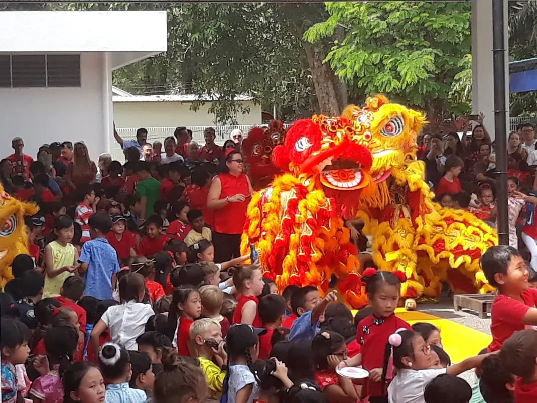 사자탈이나 용의 탈을 쓰고 추는 춘절 댄스팀은 사람이 모일 만한 곳이면 어디에서나 만날 수 있다. 요란한 징 소리와 함께 여러 사람들이 가면을 쓰고 군무를 펼친다. 귀신을 쫓기 위해 춤을 추는데, 사자의 입에 만다린 귤을 던져서 '액운은 다 걷어가세요' 한다.