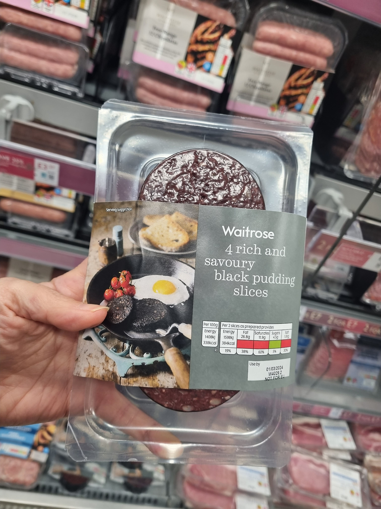 한 팩에 동그란 블랙푸딩 4쪽이 들어있는데, 가격이 2파운드(한화 3400원) 정도라서 부담스럽지 않게 즐길 수 있다. 영양적으로도 야채와 곁들인다면 아주 훌륭한 식사 한 끼가 된다.