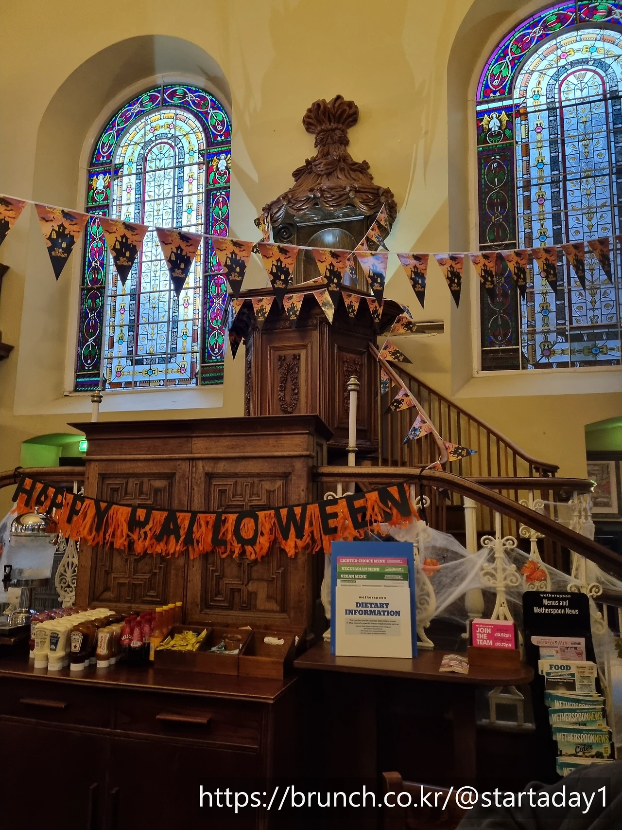 웨더스푼(Wetherspoon)이라는 대형 펍 체인 브랜드가 있다. 이 회사의 소유주는 지역을 돌면서 버려지거나 값싸게 나온 건물들을 매입해서 펍으로 리모델링하는 것으로 유명하다. 내가 사는 지역에도 이 펍 체인점 두 곳이 있는데, 그 중 한 곳은 예전 교회였다. 목사님이 설교하셨을 교단도 그대로 유지하고 있다. 이곳은 다른 지역 펍에 비해 20~30% 정도 가격이 저렴하다. 요즘 살림살이 팍팍한 서민들이 그럼에도 불구하고 외식을 할 수 있는 좋은 선택지가 되고 있다.