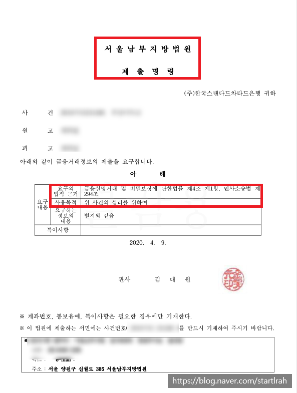 1. 법원의 제출명령 또는 법관이 발부한 영장에 따른 거래정보등의 제공