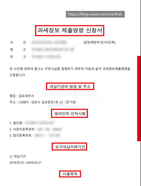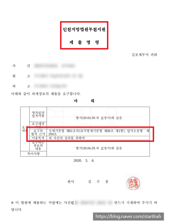 3. 법원의 제출명령 또는 법관이 발부한 영장에 의하여 과세정보를 요구하는 경우