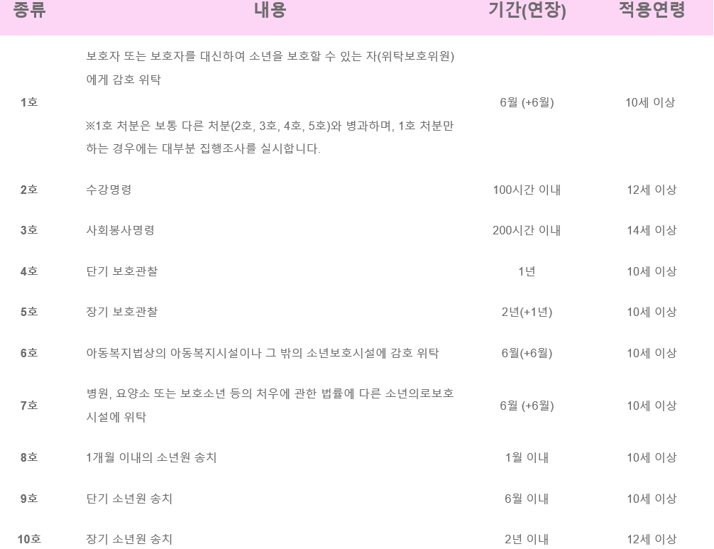 ■ 6호 처분 : 「아동복지법」에 따른 복지시설이나 그 밖의 소년보호시설에 감호 위탁