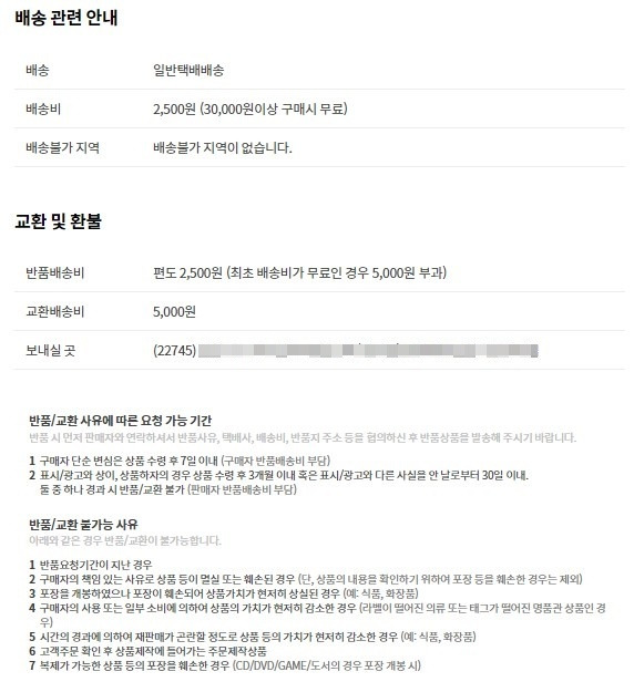 배송 소요기간, 배송비, 교환/환불 규정 등에 대해 정확히 안내해주는 것이 좋습니다.