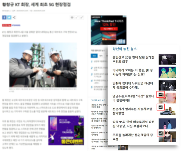 기사형 네이티브 광고는 언론사 기사 내에 다른 기사 사이에 마치 기사처럼 콘텐츠가 섞여있는 것을 말합니다.