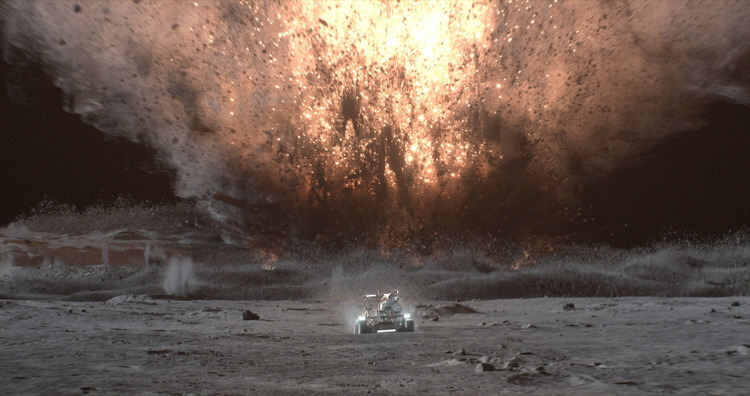유성우를 피해 달 표면을 내달리는 월면차(출처 시네21 영화정보)