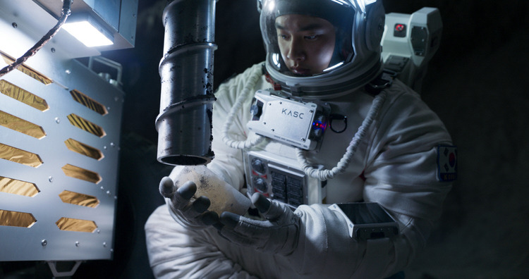 또 다른 인상 깊은 장면은 월면차를 타고 달 표면을 탐사하는 선우의 모습이었다. 사실 달 표면 신은 모두가 인상적이었다. 영화 설정상 미국에 이은 두 번째 유인 달 착륙이니 오죽하겠는가. 특히 달 착륙선이 착륙하는 장면, 유성우가 쏟아지는 와중에 달을 질주하는 장면은 압권이었다. 쏟아지는 유성우가 만든 운석 구덩이가 과학적으로 오류라는 지적이 있긴 했지만, 우주에서 일어날 수 있는 상황을 적절히 표현했다는 생각으로 넘어갈 수 있었다. 영화이기에 시각적인 효과 역시 중요함은 당연하다. 물론 뛰어난 시각 효과도 감동적이었지만 우리나라의 과학자(UDT 출신이긴 하지만 분자 물리학을 전공한)가 달에 가서 직접 드릴링 작업을 통해 달에서 연구를 진행하고 샘플을 채집한다는 설정에 감동했는지도 모르겠다.