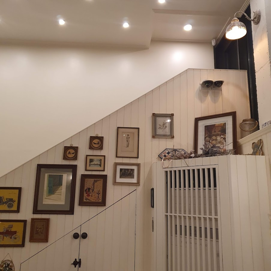 액자도 모두 하나같이 따듯했다. 비슷하면서도 다른 크기, 또 다른 방향에 다른 주제들로 채워진 액자들은 하얀 계단의 하얀 여백을 채우면서 마치 내 요거트위에 올라와있는 다양한 토핑같이 공간이 붕 뜨는 것을 막아주는 듯했다.