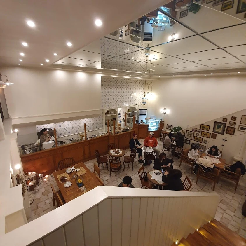 가게는 되게 신기한 구조로 되어있었다. 계단은 양쪽에 나아 있어서 두 방향으로 들어오고 나갈 수 있게 되어있었다. 계단을 타고 내려와서 세네 발자국만 정도만 걸으면 바로 카운터에 도착할 수 있었는데, 우리는 이미 도착해서 기다리고 있던 한 친구 자리 근처에 짐을 먼저 풀어놓고 조금 가벼운 마음으로 메뉴를 구경하러 갔었다.