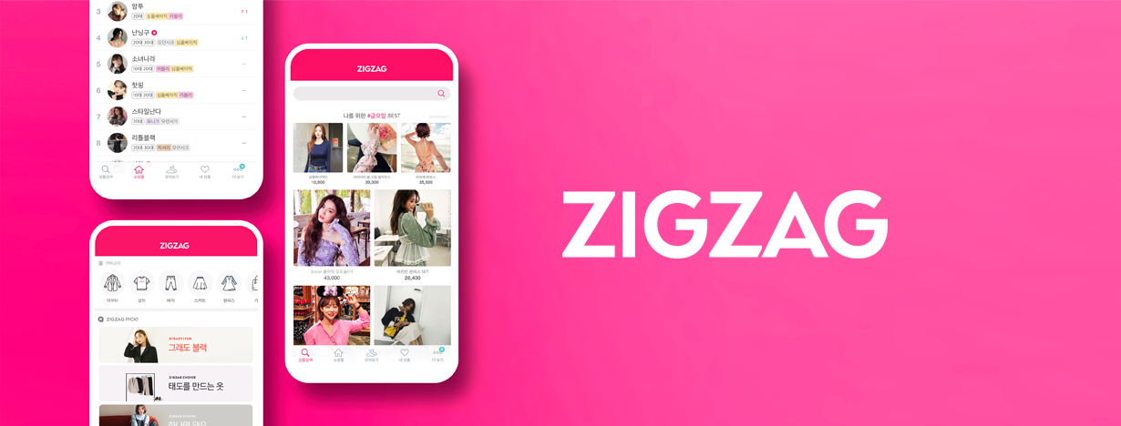 지그재그는 네이버와 카카오로 양분되는 온라인 패션 플랫폼 시장에 3년 전 혜성처럼 나타난 여성 쇼핑몰 모음 앱입니다.