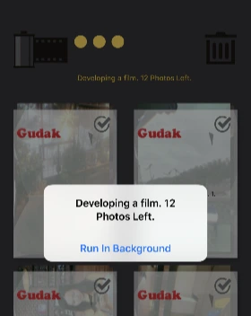 이 점이 구닥의 가장 핵심적인 특징인데요. 찍은 사진을 바로 확인하고 삭제, 편집이 가능한 다른 카메라 어플과는 달리 구닥은 24장의 필름롤을 모두 사용 후, 그러니까 24장의 사진을 촬영하고 난 후에 72시간을 기다려야 내가 찍은 사진을 확인할 수 있습니다. 필름 카메라를 다 찍어도 그 필름을 사진관에 가져다가 맡기고 인화가 될 때까지 기다려서 찾으러 가야 하는 점을 그대로 어플을 통해 구현한 셈입니다.