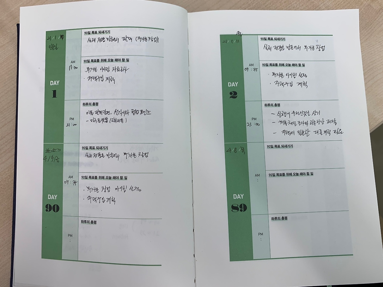내가 뭘 했는지 조차 기억도 안 나더라. 책을 구매한 계기로 2021년 1월, 90일 챌린지 도서를 사용해보았다.