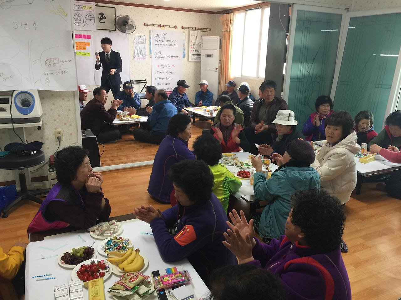 교육을 이수하면 작은 돈을 벌 수 있다는 이야기를 들었고 교육을 마치고 농촌으로 실습을 갑니다. 교수님 말씀처럼 작은 돈을 벌 수 있었어요. 농촌으로 현장실습을 가는데 70세 넘는 어르신들을 모시고 회의를 하는것이었어요. 지금은 익숙해진 일이지만 10년 전엔 사람들이 혀를 끌끌차며 시도하지 않던 정부사업이었습니다. 회의가 잘 되는 모습을 목격하고 작은 충격을 경험 합니다.