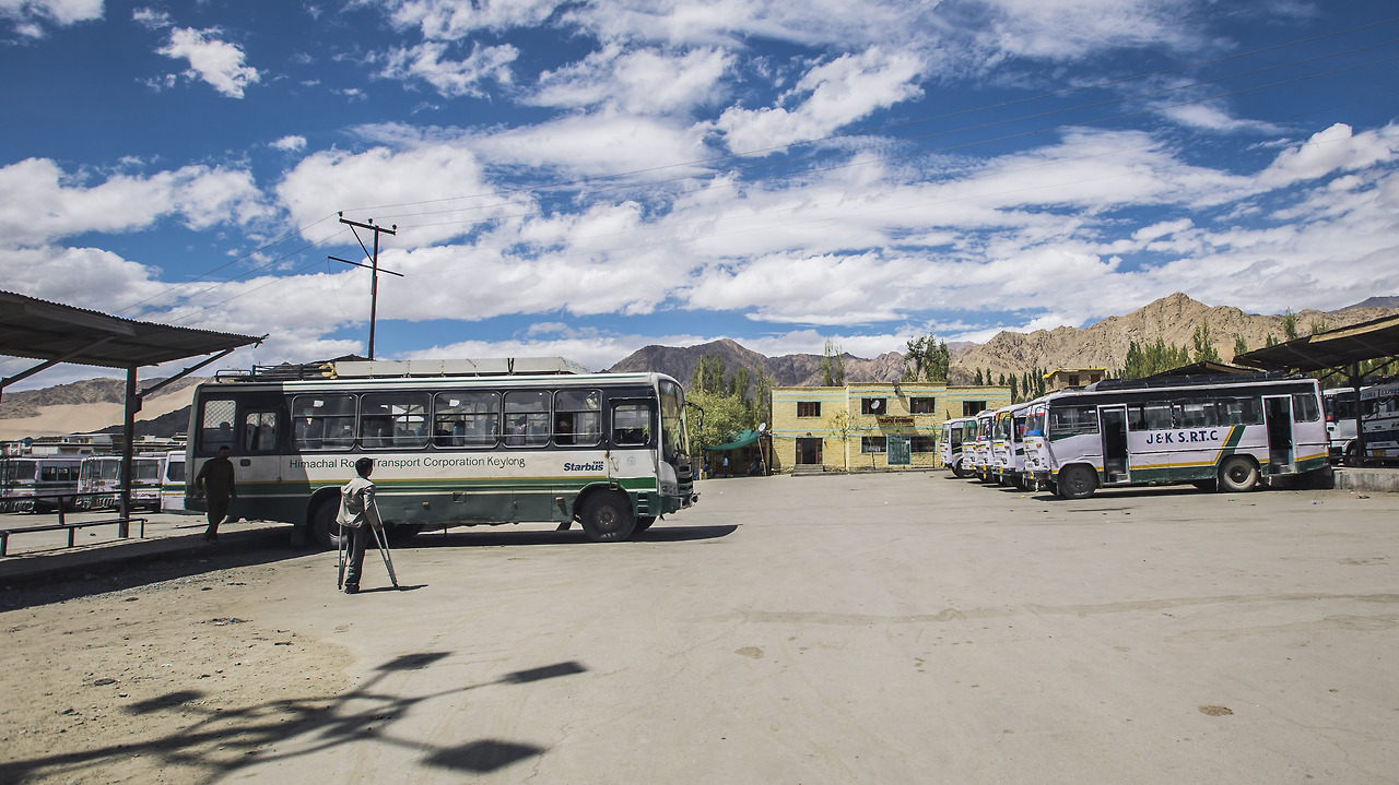 여기가 레에서 하나밖에 없는 버스 터미널입니다. 레에서 다른 곳으로 이동하기 위해 로컬버스를 타려면 이곳으로 오시면 되는데요.. 앞에 보이는 버스들이 저희를 판공초까지 데려다 줄 버스입니다...