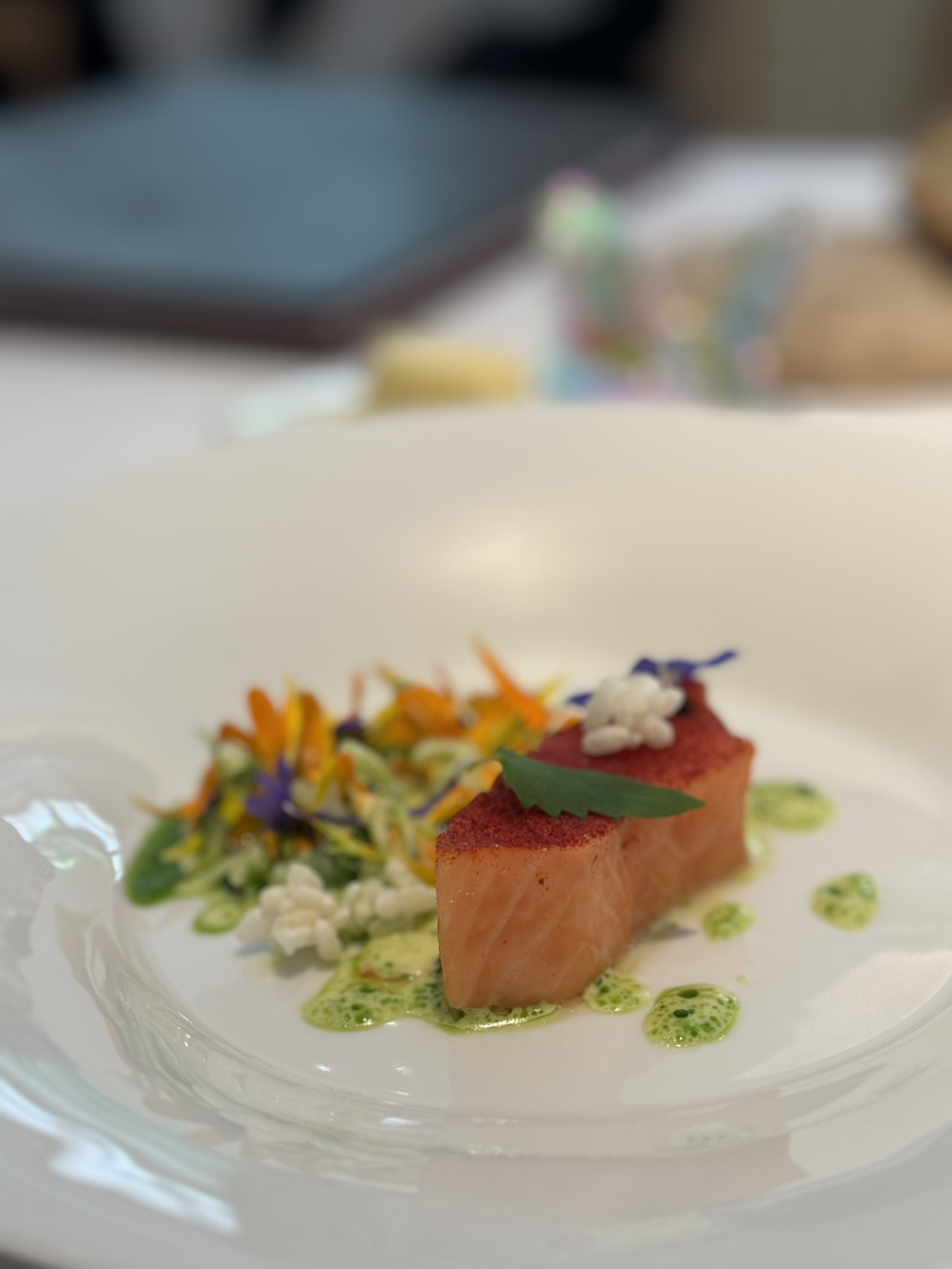 에피큐어의 음식은 재료 본연의 질감과 육향, 어향을 완벽하게 살려냅니다. 모든 요리의 밸런스가 절묘하게 맞아떨어진다는 점이 인상 깊었으며, 콜리플라워 무스와 완두콩으로 만든 아뮤즈 부쉬는 입안에서 춤을 추는 듯한 맛을 선사합니다.
