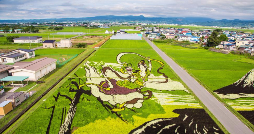 일본에 쌀로 유명했던 작은 마을이 있었습니다. 이 곳은 고령화와 인구감소로 생산력에도 문제가 생겼고, 일본인 식습관의 서구화로 판매량도 급감했습니다. 그렇게 쇠락해가던 '이나카다테' 마을이 쌀 농사와 예술을 결합해 화려하게 부활했습니다. 황색, 백색, 주황색, 적색, 녹색, 자색 등 다양한 색상의 쌀을 심어 논에 거대한 그림을 그린 것입니다. 논이 캔버스로 변하자 관광객과 판매량이 급증했습니다.