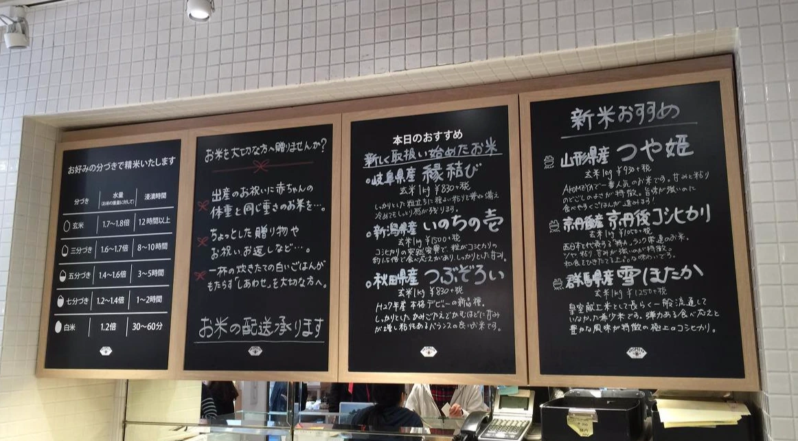 또한 같은 쌀이어도 정미도에 따라, 그리고 쌀을 불리는 물량과 시간에 따라 밥맛이 달라집니다. 아코메야는 쌀 판매에서 그치는 것이 아니라 고객이 원하는 수준으로 현장에서 직접 정미를 해주고 정미도별로 밥을 짓는 적절한 방식을 설명해줍니다. 백미의 경우도 30분~60분, 현미의 경우는 12시간 이상 물에 담가둬야 한다는 설명을 보면 한끼를 때우는게 아니라 채우는 것의 난이도를 알 수 있습니다.