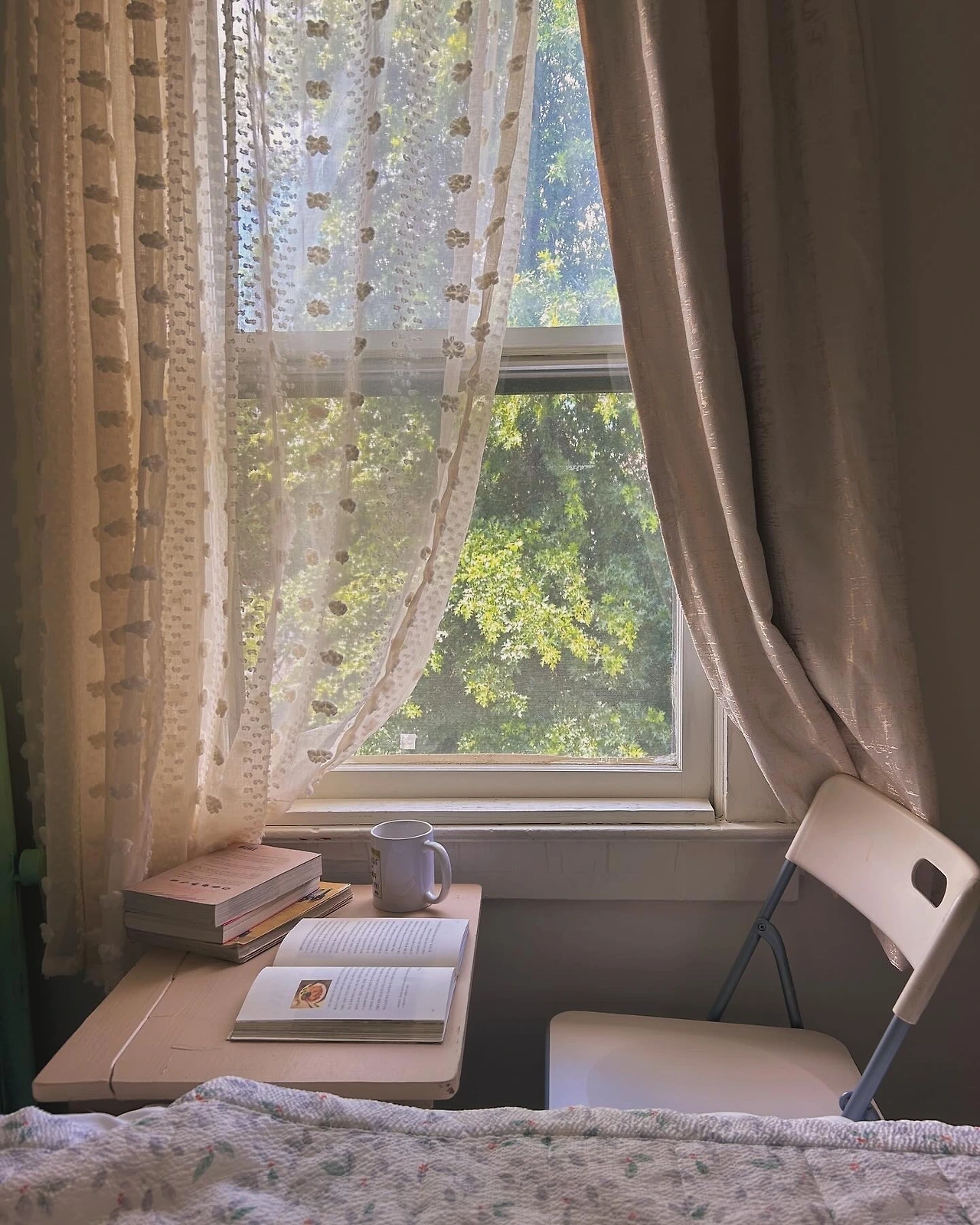 그러면 잠시 머무르는 동안에도 삶을 그냥 흘려 보내지 않고 그 자리에 앉아 하루를 돌아보고 책도 읽게 된다.