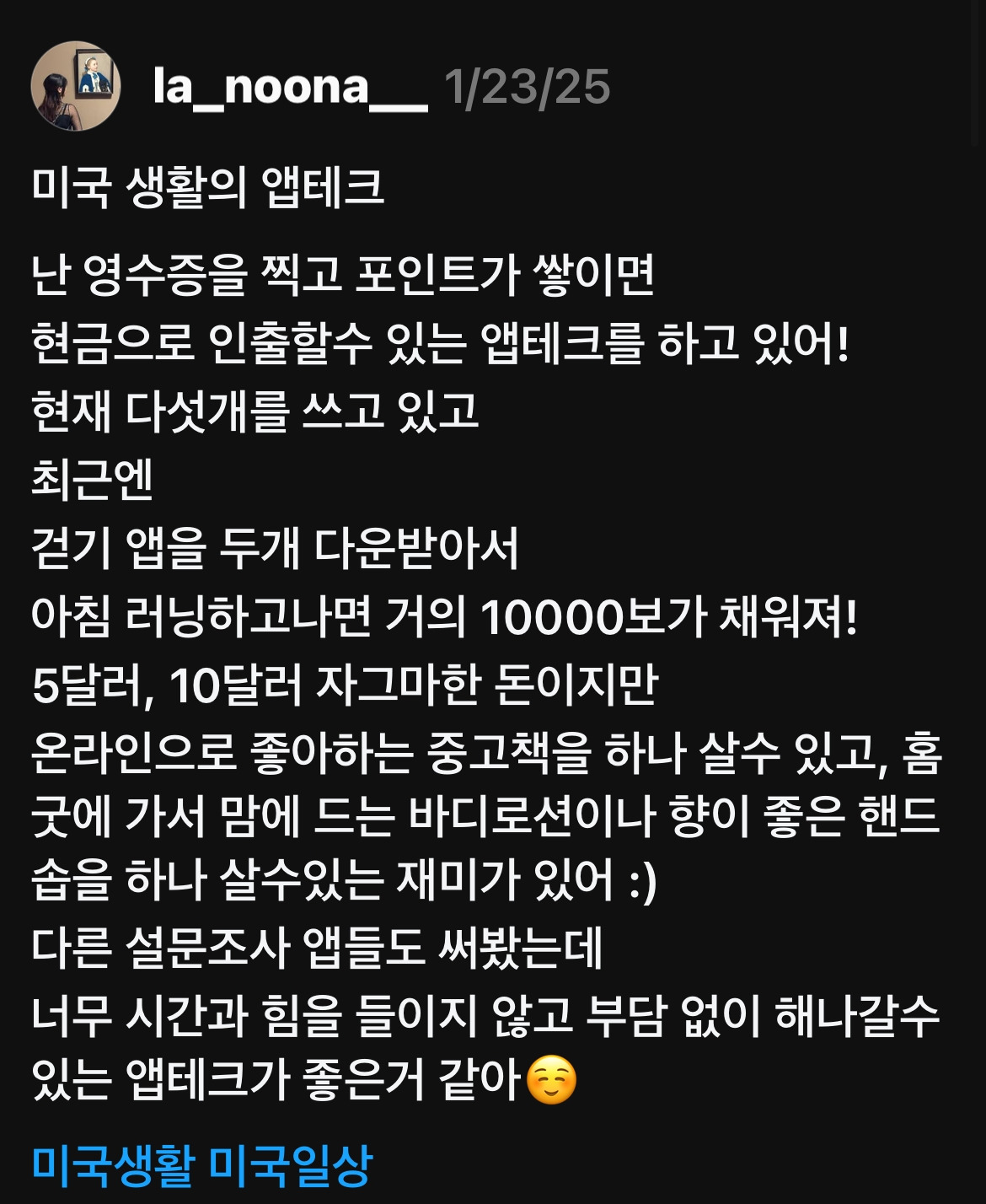 며칠 전 threads에 혹시나 도움 되실분이 있을까 하여 내가 쓰는 돈버는 앱들에 대한 글을 올렸다.