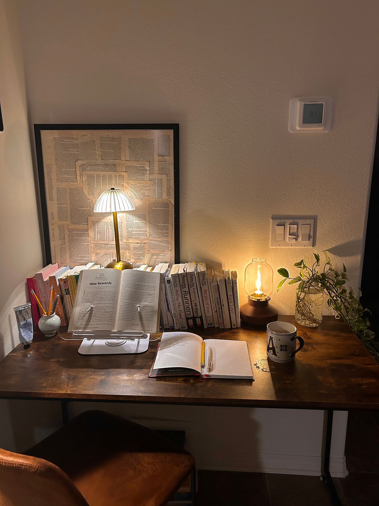 매일 아침 거실로 내려와 제일 먼저 하는 일은 거실 한 모퉁이 내 책상의 램프를 켜는 일이다.