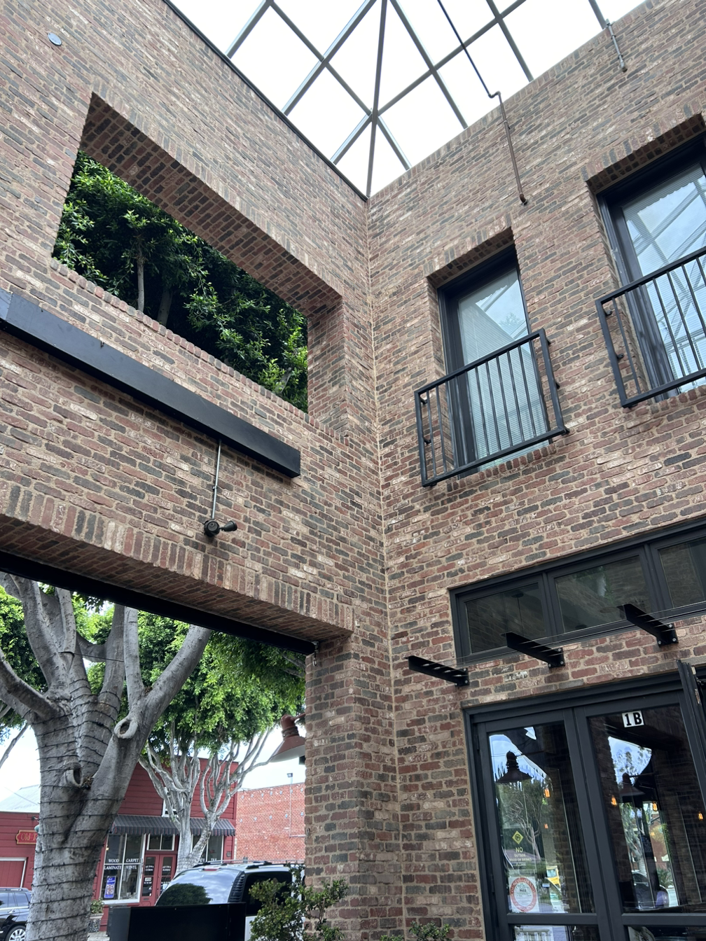 강아지도 같이 앉아서 먹을 수 있는 파티오에서 보이는 벽돌 건물이 뉴욕을 연상시킨다. 천장엔 적당한 햇빛은 들여보내고 비는 막을 수 있는 투명한 지붕이 있어서 마치 그린 하우스에 앉아있는 기분이 든다.