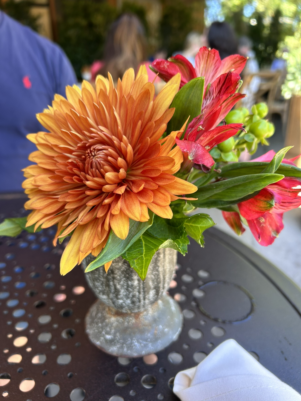 테이블 위 꽂아둔 작은 꽃들도 마당에서 막 잘라와서 꽂아 놓은 가정집 꽃병 느낌이다 :)