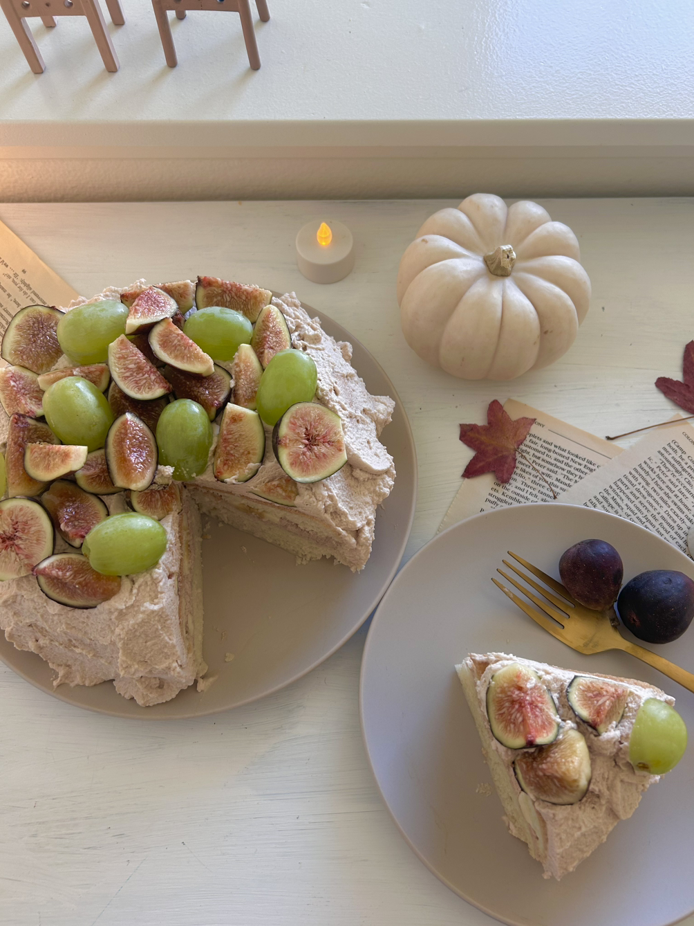 처음 만들어 보는 거면서도 동시에 처음 먹어보는 무화과 케이크인지라 나름 케이크 디자인을 생각해 보았는데 풍성하고 먹음직스럽게 무화과를 많이 올리면 예쁠 거 같아 5개 정도를 잘라 올려줘 봤다.