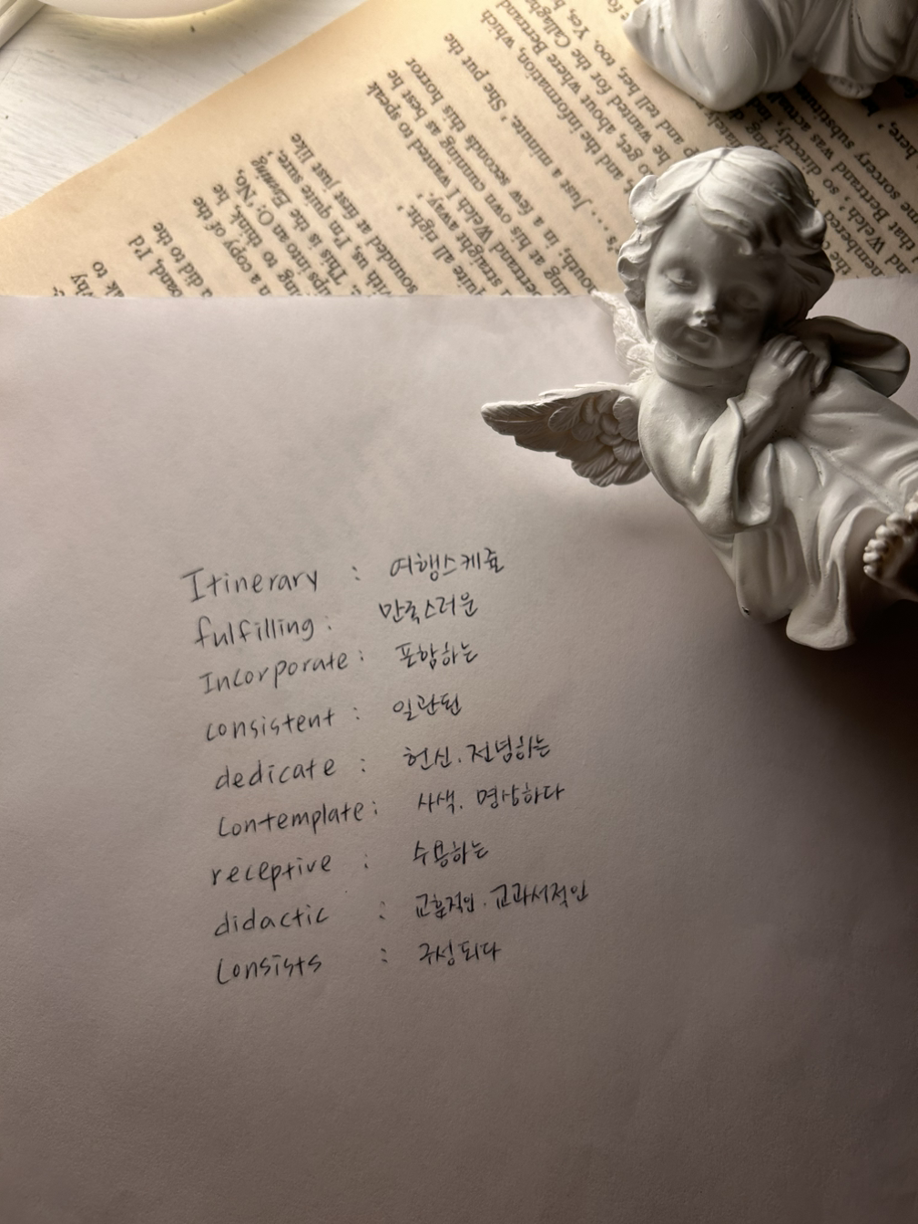 첨 보는 몇 가지 단어들을 종이에 써서 외워보고 핸드폰 배경화면에 저장했다. 이러면 폰을 켤 때 한 번씩 단어를 볼 수 있어 외우는데 도움이 된다.