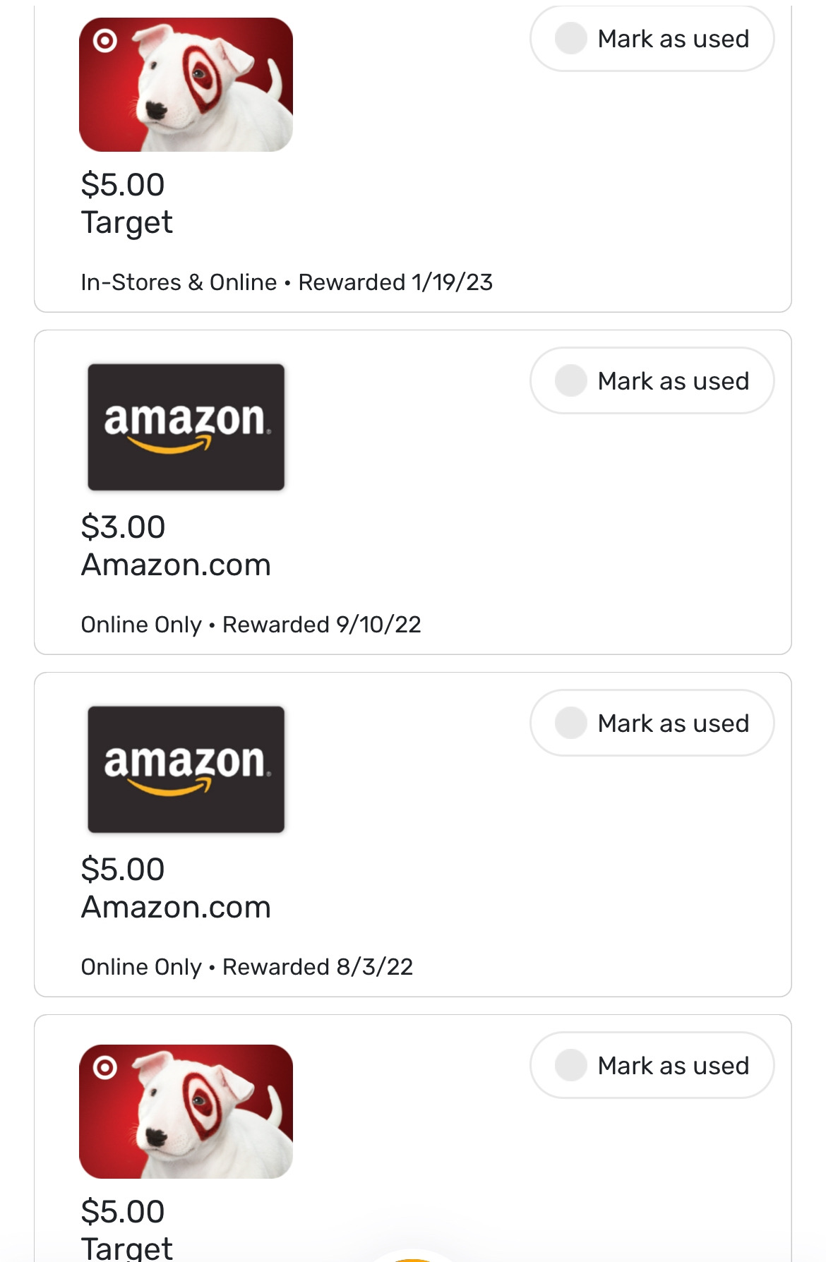 물건을 사거나 레스토랑에 가면 난 영수증을 받아온다. 영수증을 찍어 앱에 올리면 포인트가 쌓이고 그걸 돈이나 기프트 카드로 바꿀 수 있기 때문이다. 난 3가지 영수증 앱을 쓰고 각각 다 포인트를 쌓는다. 사진을 찍을 땐 이름이나 카드번호 같은 개인 정보는 펜으로 지우고 사진을 찍는다. 외출 후 돌아오면 가져온 영수증을 찍어 올리고 이렇게 하나둘씩 쌓여 어느새 5달러 , 10달러가 된다. 난 이 돈으로 좋아하는 디자인의 머그컵을 하나씩 사거나 맘에 드는 바디로션을 사기도 한다. 그냥 버려지기 일쑤인 영수증을 사용해 번 돈으로 평소 사고 싶던 작은 것들을 사는 것도 소소한 재미가 있다.