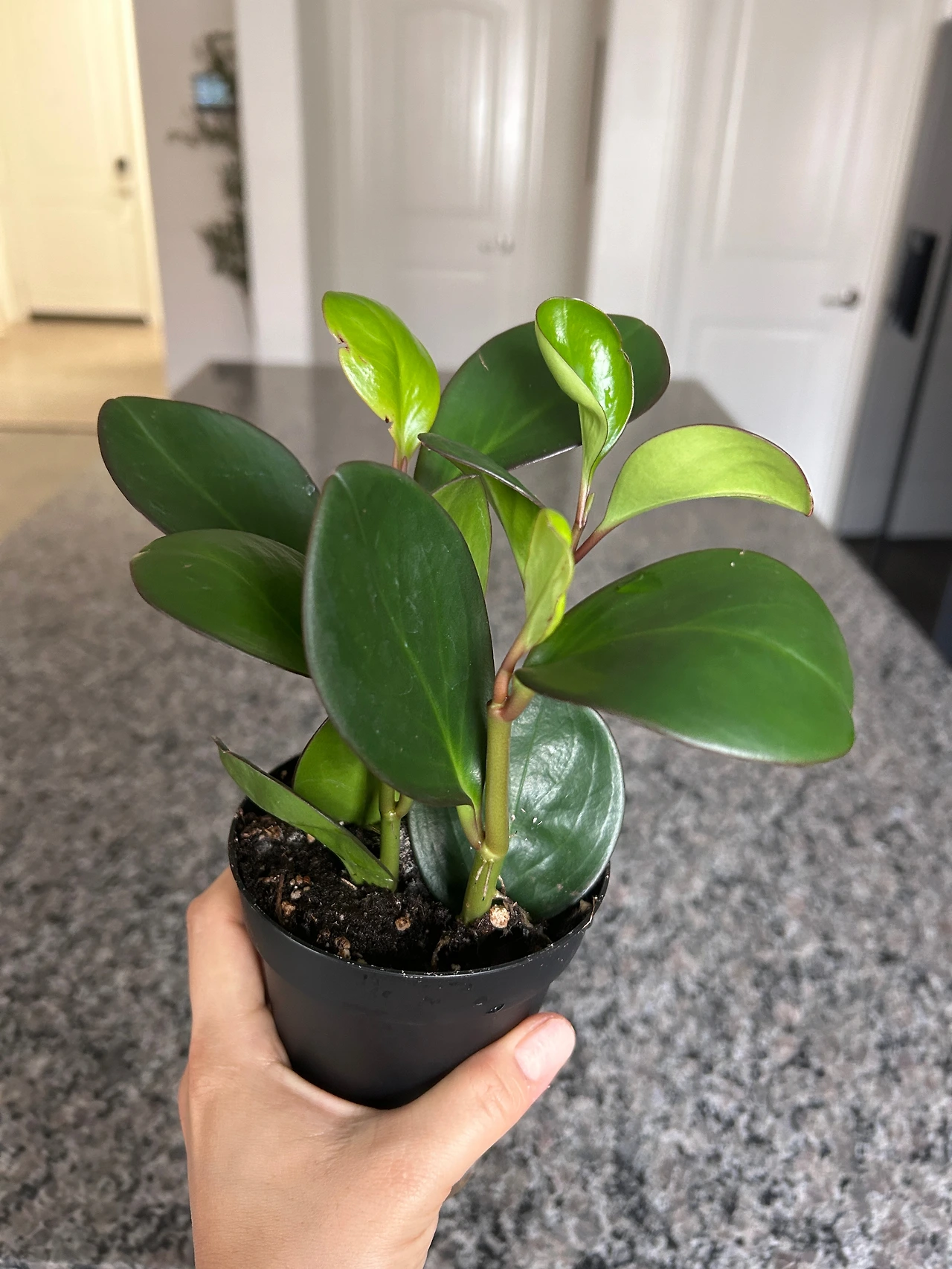 꽤 예쁘고 근사하게 생긴 식물들이 한번씩 세일을 하기도 해서 하나씩 사오는 재미가 쏠쏠하기 때문이다. 작은 식물들은 실내에서 키워야 하므로 손이 덜가고 햇빛을 덜쐬어도 키우기 쉬운 아이들인지 잘 검색해본다. 이번엔 페퍼로니아를 세일하고 있어서 3.70$에 하나를 데려왔다. 아침마다 푸릇푸릇 싱그러운 잎사귀와 물을 쪽쪽 빨아들이는 흙을 바라보면 내 갈증이 해소 되는듯한 기분이 든다.