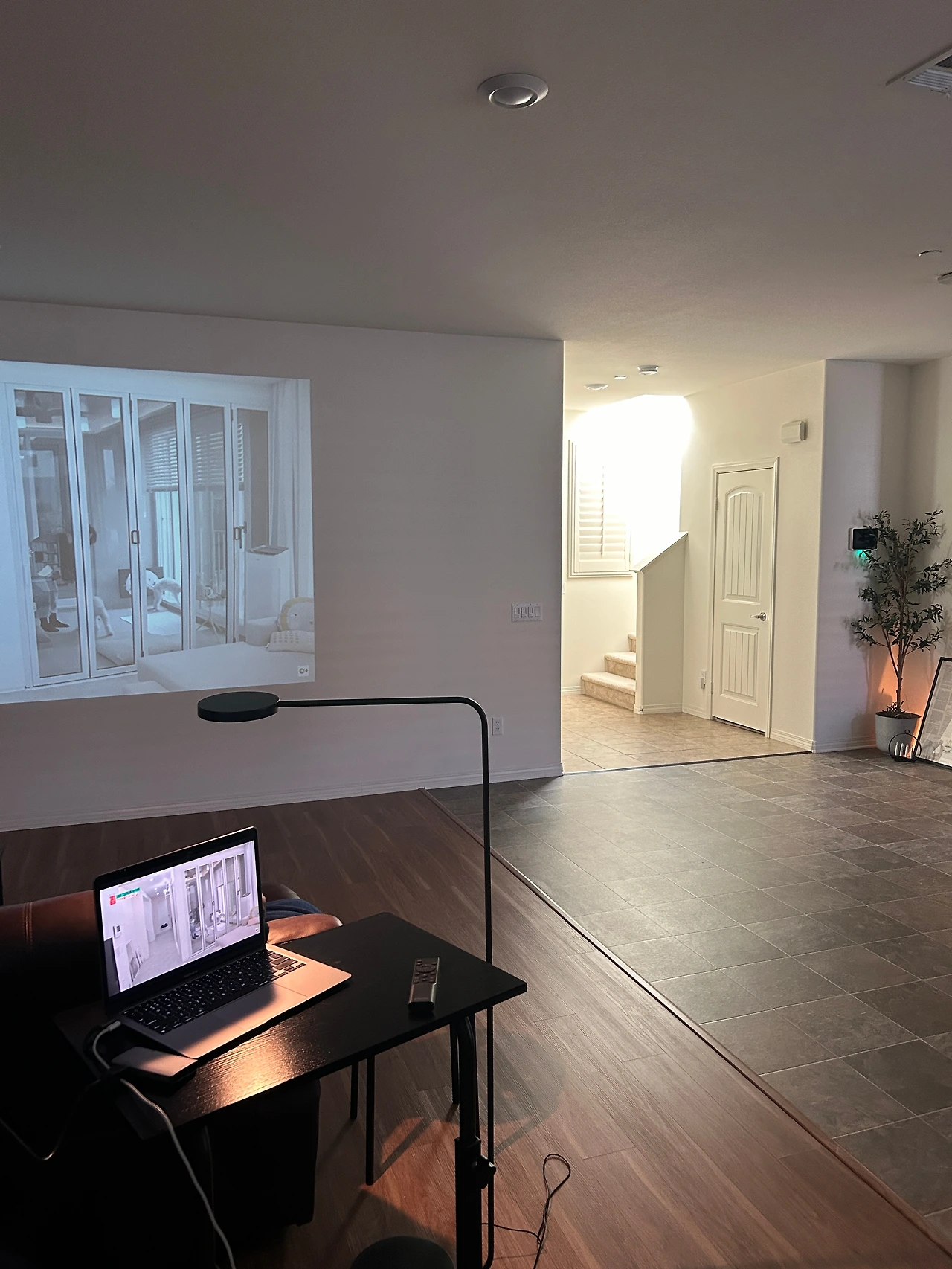 동생이 준비하는 동안 프로젝터를 켜고