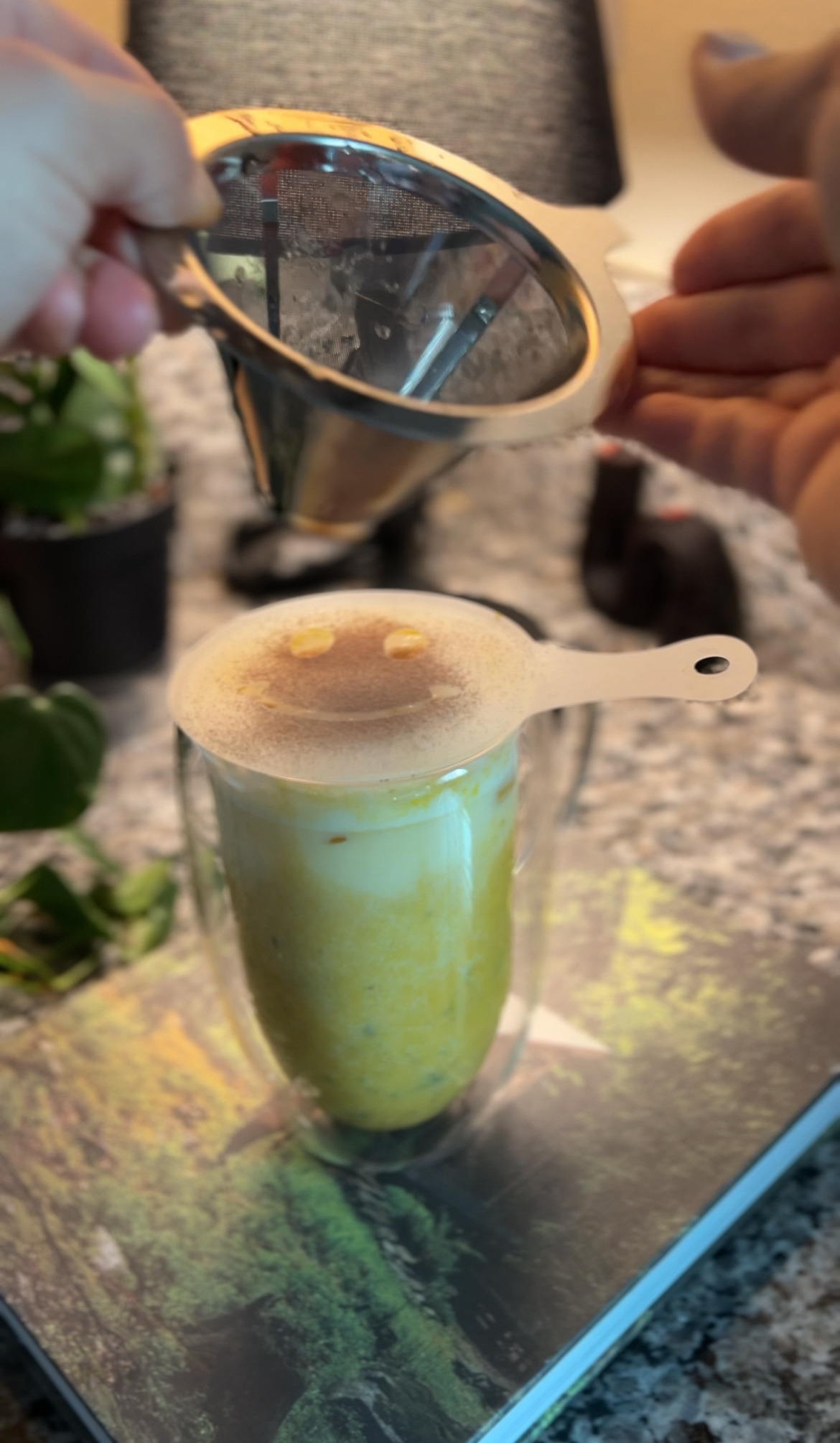 파우더 통에 넣어 뿌려주면 더 예쁘게 나올 것 같기도 하고 거품을 더 평평하게 올려줘야 할 거 같기도 하다.