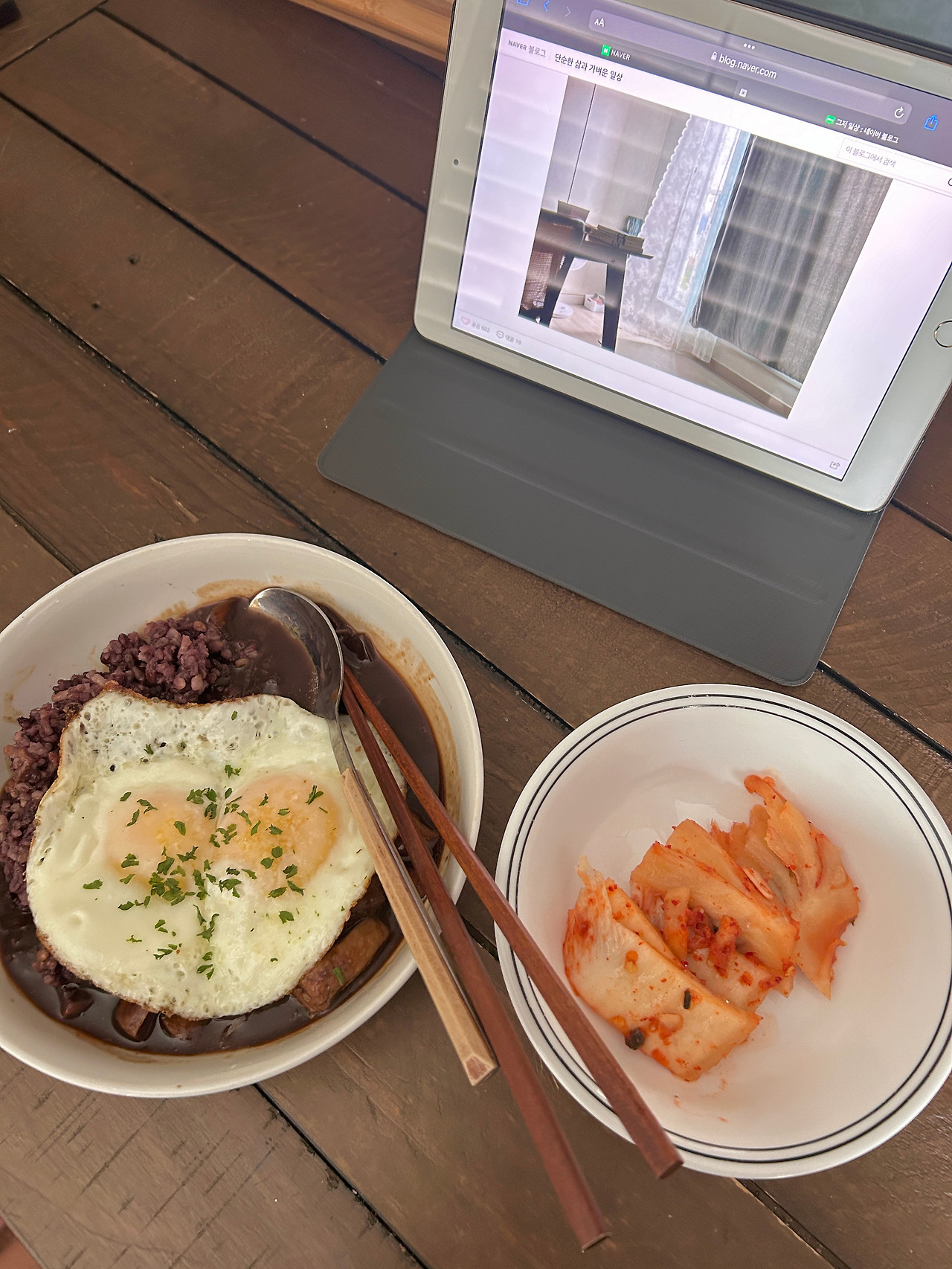 어제 해놓았던 짜장에 밥을 비벼 먹었다.