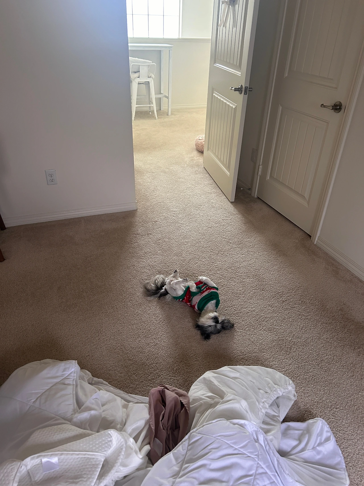 우리 집 강아지가 갑자기 벗겨놓은 시트옆에서