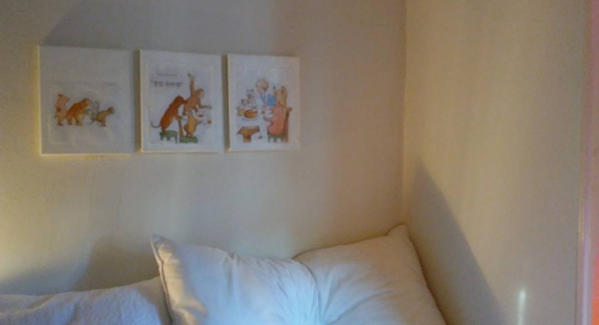 맨해튼을 걷다 발견한 헌책방에서 산 1달러짜리 그림책을 찢어 액자를 만들어 걸어주었다.