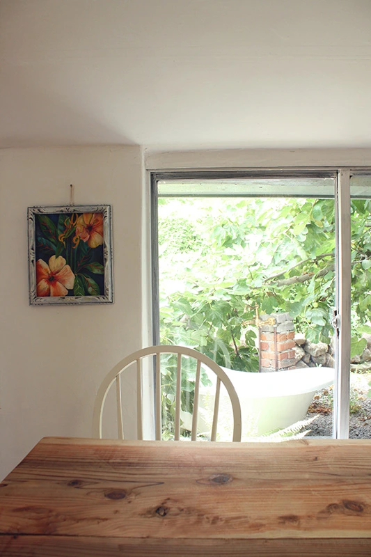과거, 제주에서는 집집마다 돼지를 키우고, 돼지 집 위에 무화과나무를 심었다고 한다. 생장이 빠르고 잎이 커서 돼지에게 그늘을 제공하기 좋은 나무이기 때문이다. 원래 심겨져 있던 무화과나무를 잘 전정하여 그 밑에 욕조를 두었다. 예쁜 샤워기와 패턴 타일이 지중해의 느낌이 주기도 한다. 거실과 다이닝룸 창밖으로 보이는 야외욕실정원의 풍경이 이색적이다.