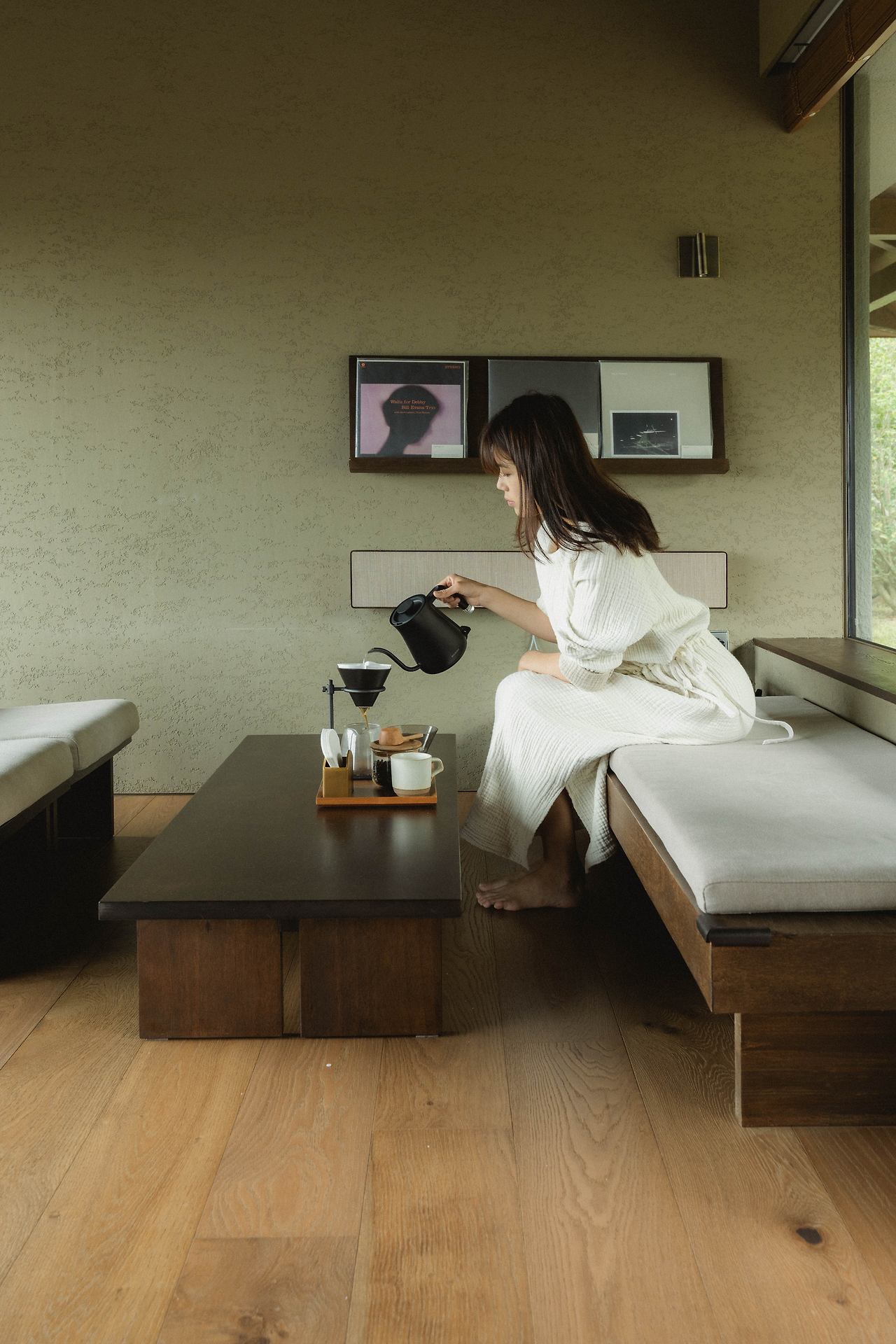 서리어의 바깥채는 화장실과 다도 공간, 침대가 있는 안락한 공간이었다. 4인 이상의 가족이 오면 분리된 공간에서 서로의 시간을 보낼 수 있다는 것도 서리어의 장점 중 하나.