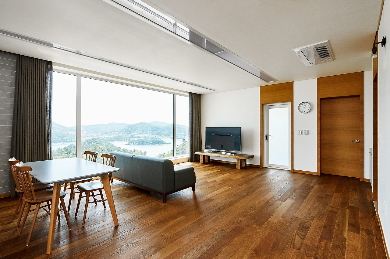 이 곳 가고파그집을 설계한 고기웅 건축가는 자연환경이 너무 빼어난 곳이라 모든 객실이 풍경을 나누어 누릴 수 있도록 전체 대지 레벨을 따라 건축물을 배치하고 객실마다 프레임 안으로 풍경이 담길 수 있도록 창의 높낮이와 크기를 섬세히 설계한 모습을 엿볼 수 있었다.