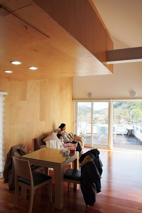 곰스크(Gomsk) 주변으로는 병풍처럼 산이 건물을 감싸고 테라스 밖으로는 용화해수욕장이 멀리 보인다. 가족이 사는 주인집, 별장으로 사용하는 동생집을 비롯해 펜션으로 활용되는 4개의 객실은 아뜰리에(Atelier), 블루문(Bluemoon), 클레지오(Clezio), 프리다(Frida)란 이름으로 풍경과 대응하는 매력이 좋다.