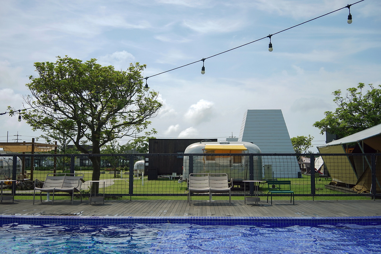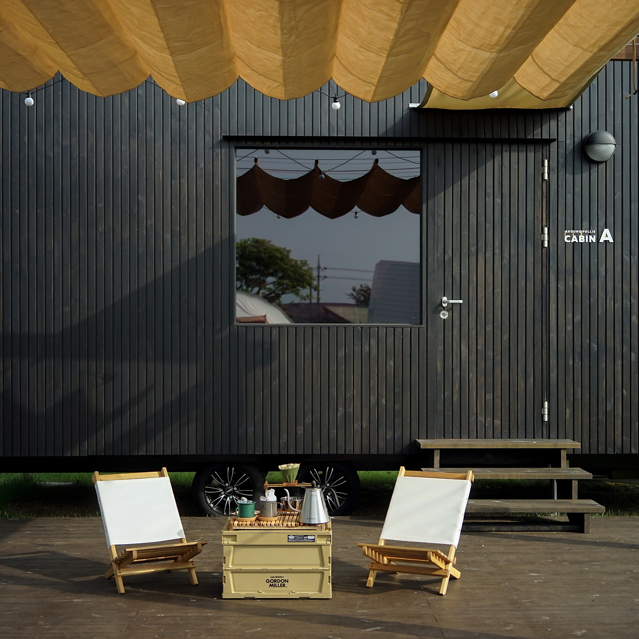 또 다른 널찍한 창은 어라운드폴리의 캠핑존을 향해 있었다. 그 앞으로는 탁자와 의자가 마련되어 있어 두 사람에게 딱 알맞은 다이닝 공간이었다.